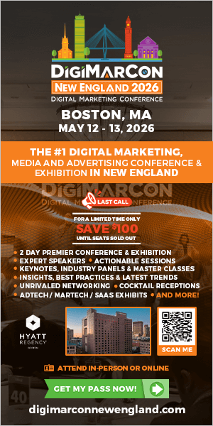 Sign up for email updates and get your the FREE DigiMarCon New England brochure and stay in the know about all things DigiMarCon including price changes, discounts, and the latest speakers added to the schedule.
